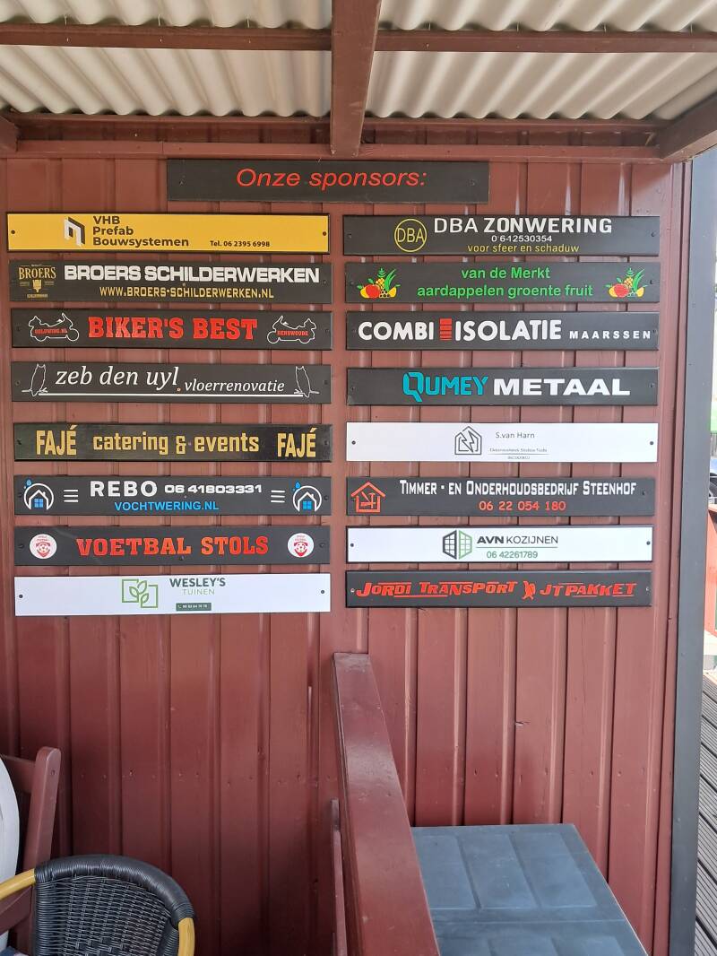 Niet alleen op FB en website , maar nu ook in de speeltuin zelf hangen daar mooie reclamebordjes van onze sponsors dit nieuwe seizoen .